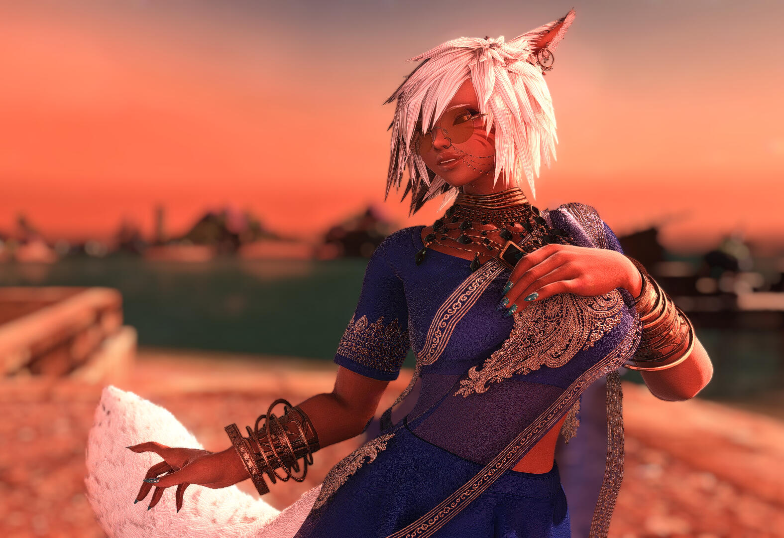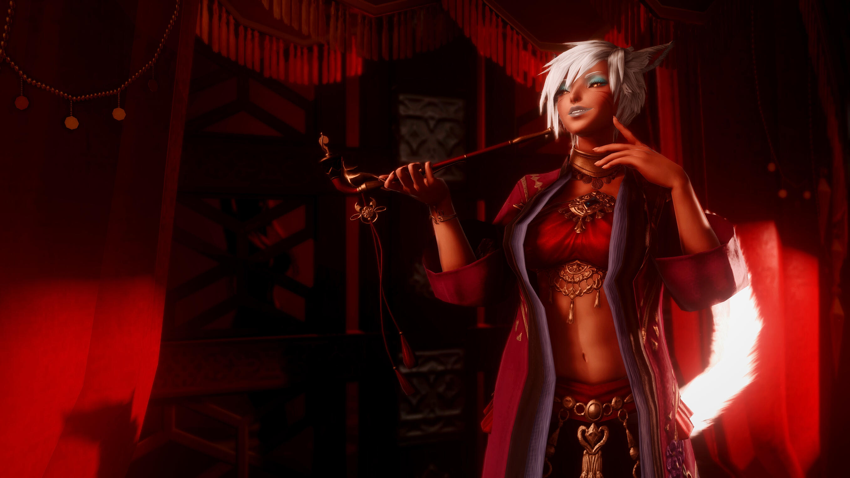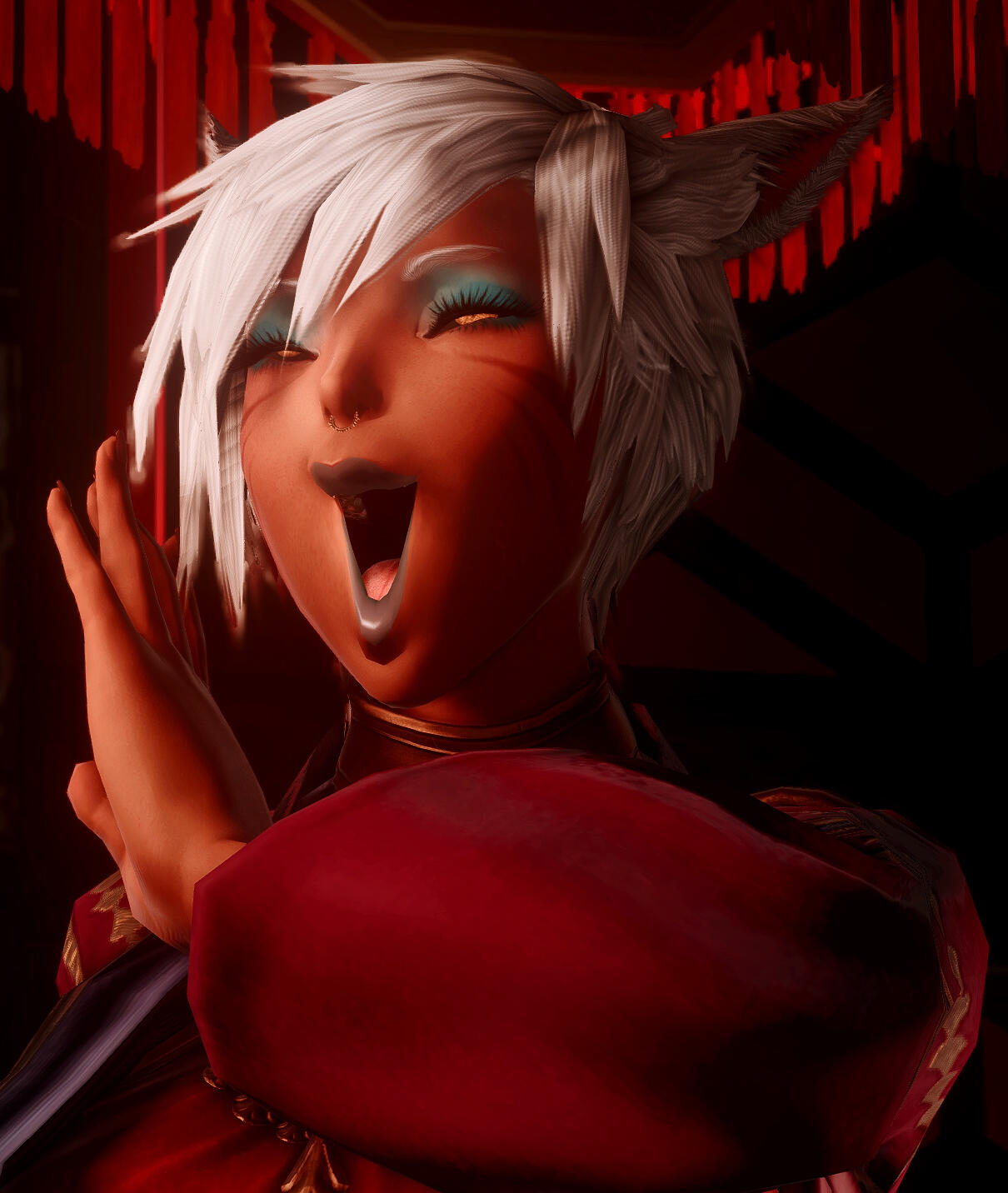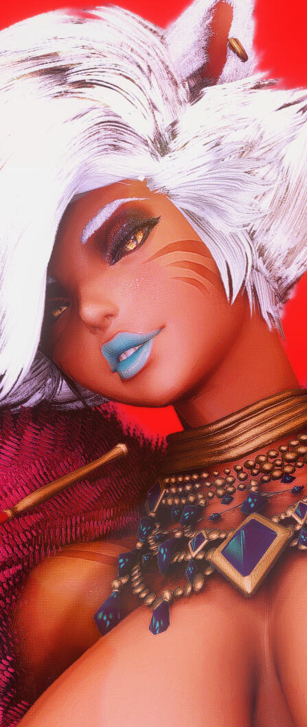 Sunny Khaaz was raised in a seeker village out in the Sagolli Dunes of Thanalan till she was a teenager. It was by her immature or foolish ignorance that she chose to run away from her home to Ul'dah. There she a homeless street rat for a few years. Until luck came when a Madame of a local brothel took her under her wing, educated her and had her work janitorial duties. When she came of age was when her training as a courtesan started. Having long lasting career in being a professional courtesan proved fruitful. Ending up owning the prestigious Whispered Wish at a young age of late twenties. But where most folks expect a high class eloquent lady for a Madame, Sunny is the opposite. She is bold, loud, but confident in her stride. Her street smarts and bond with fellow sex workers pulled the Whispered Wish out of it's dark past and into a brighter future for its employees. One that has spanned for eight years under her ownership. She is someone who can stick out from the crowd and make her presence known. Her loud social positive energy radiates out to those around her making a simply social gathering into a party. When spending time with Sunny, a fun and memorable night is not a possibility, but a promise.