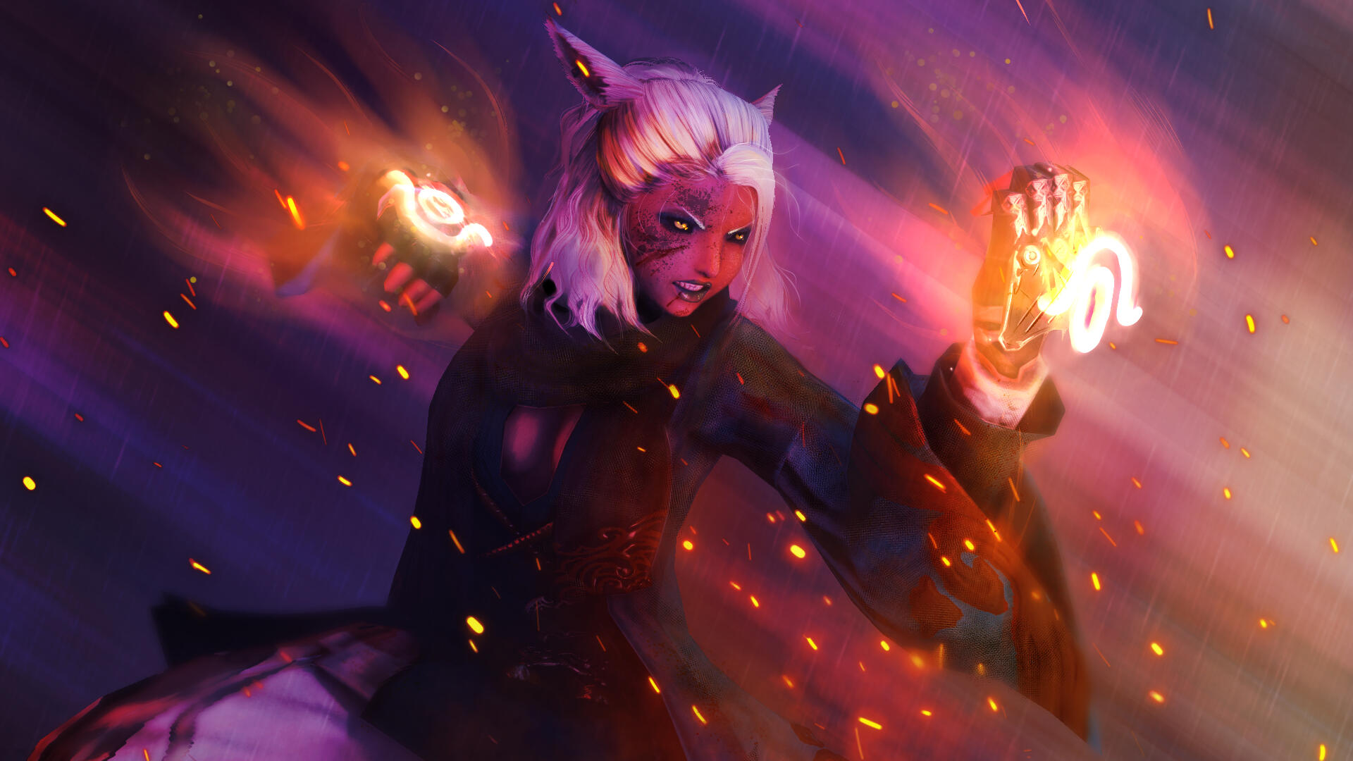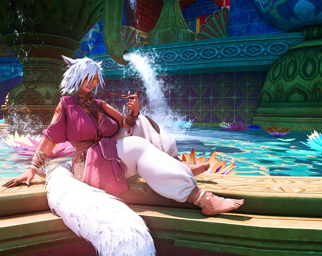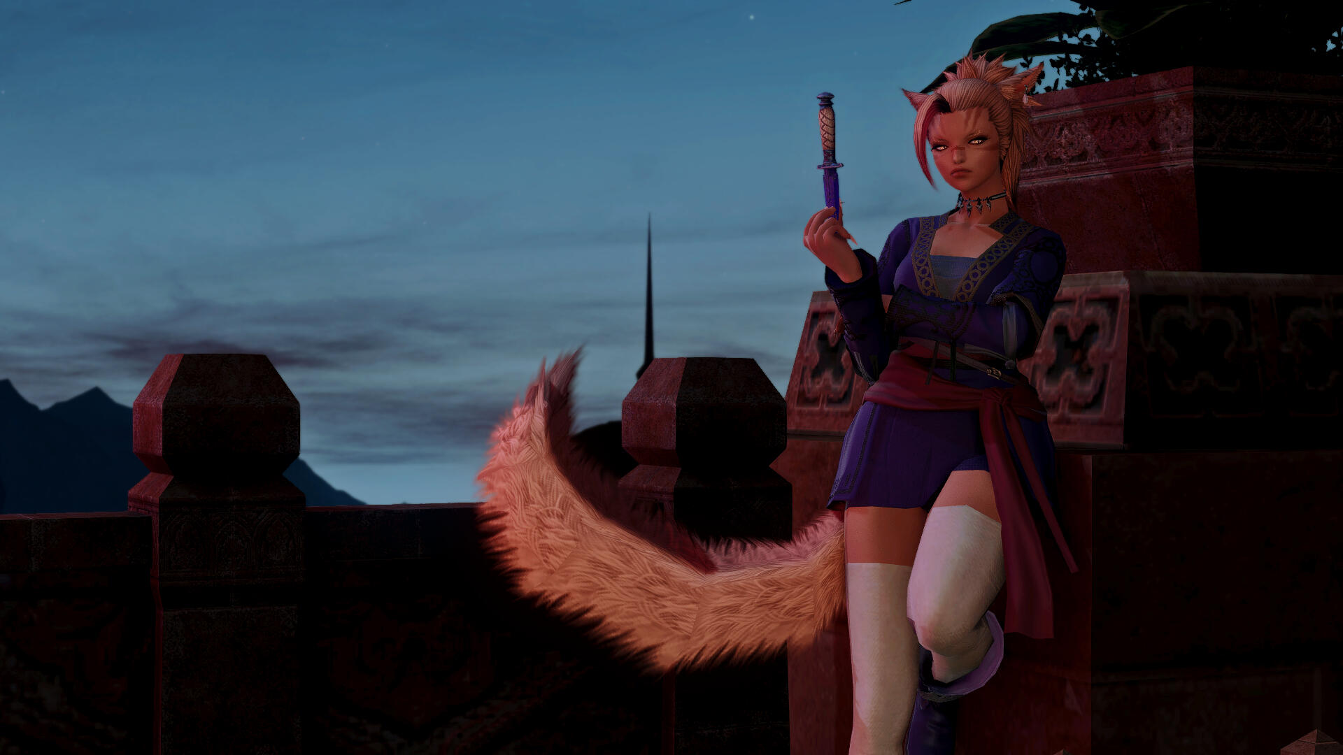 Sunny Khaaz was raised in a seeker village out in the Sagolli Dunes of Thanalan till she was a teenager. It was by her immature or foolish ignorance that she chose to run away from her home to Ul'dah. There she a homeless street rat for a few years. Until luck came when a Madame of a local brothel took her under her wing, educated her and had her work janitorial duties. When she came of age was when her training as a courtesan started. Having long lasting career in being a professional courtesan proved fruitful. Ending up owning the prestigious Whispered Wish at a young age of late twenties. But where most folks expect a high class eloquent lady for a Madame, Sunny is the opposite. She is bold, loud, but confident in her stride. Her street smarts and bond with fellow sex workers pulled the Whispered Wish out of it's dark past and into a brighter future for its employees. One that has spanned for eight years under her ownership. She is someone who can stick out from the crowd and make her presence known. Her loud social positive energy radiates out to those around her making a simply social gathering into a party. When spending time with Sunny, a fun and memorable night is not a possibility, but a promise.